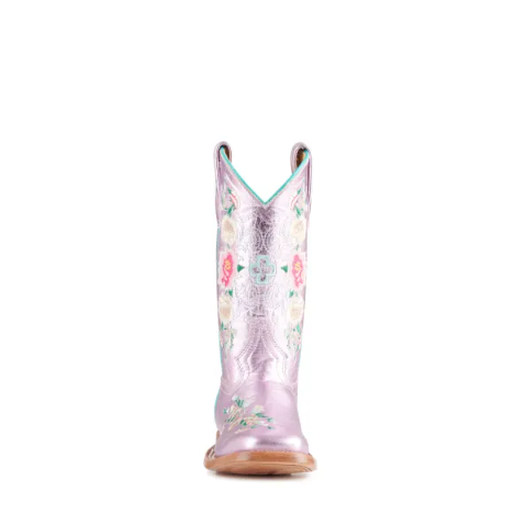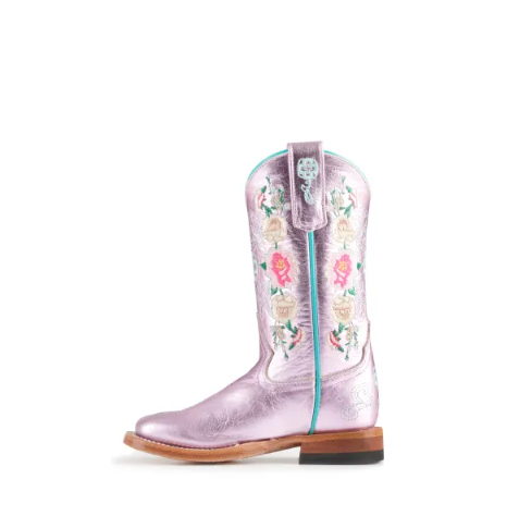 - Anderson Bean | Youth Macie Bean Metallic Pink Floral Embroidered Square Toe Cowboy Boots-LIGHT PINK | Quick Ship!