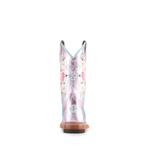 - Anderson Bean | Kids Macie Bean Metallic Pink Floral Embroidered Square Toe Cowboy Boots-LIGHT PINK | Quick Ship!