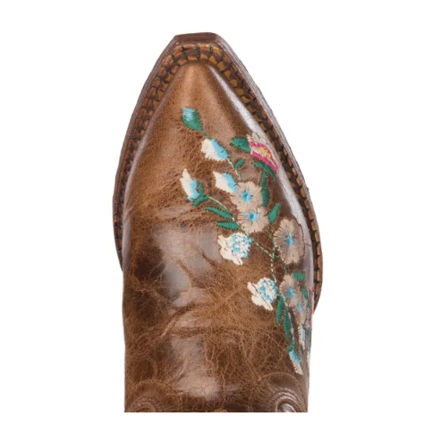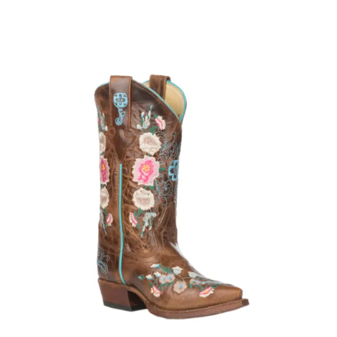 - Anderson Bean | Youth Macie Bean Antiqued Honey Brown with Rose Garden Embroidery Snip Toe Boots-BROWN | Quick Ship!