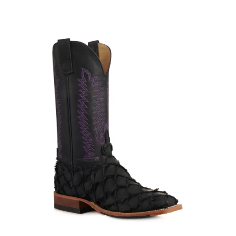 If there is one thing that Anderson Bean knows how to do, it's make a great cowboy boot. These Black Pirarucu Wide Square Toe Exotic Cowboy Boots are handcrafted in Texas, just like all of their other boots, and come with a few unique features that make them stand out from the rest.