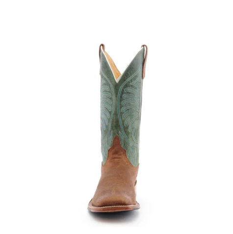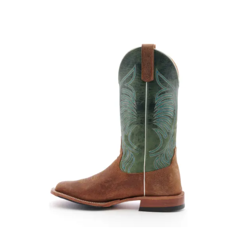 Anderson Bean presents these Havana Boar western square toe boots. These boots have a rust foot and a moss mad dog upper. They have a square toe, leather side seam and piping, a steel shank for maximum support, premium cowhide lining and a block heel. They are pull on and are 15" total in height.