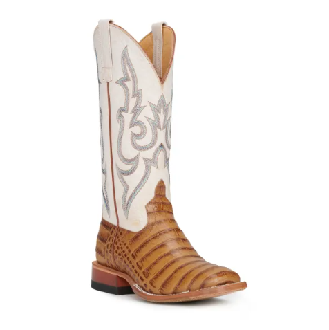 Dang! Those are 'Slick Rikki'! Even if your name's not Rikki, these are still pretty slick! A toasted caiman print paired with a bleached bone top offers a more traditional look, while still having some fun pop. Featuring a square toe, roper heel, and hybrid outsole for durability and traction.