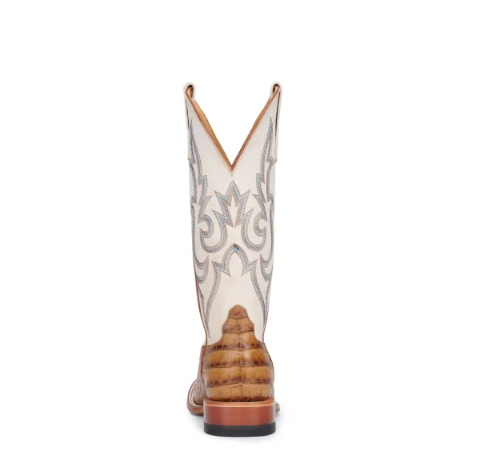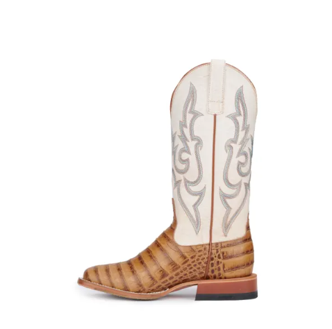 - Anderson Bean Women's Macie Bean Antique Saddle Caiman Print and Bone Wide Square Toe Cowboy Boots-SADDLETAN | Quick Ship!