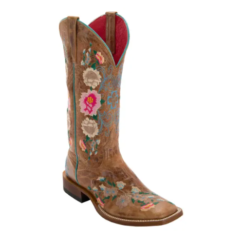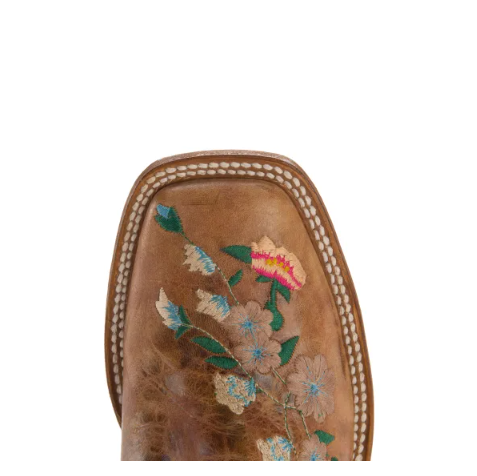 - Anderson Bean Women's Macie Bean Antiqued Honey Brown with Rose Garden Embroidery Square Toe Cowboy Boots-TAN | Quick Ship!