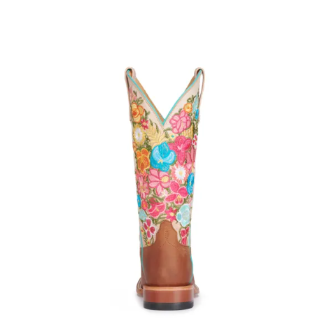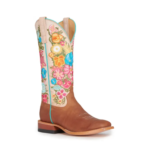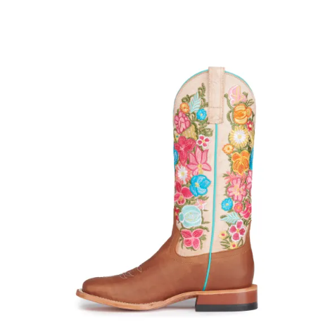 - Anderson Bean Women's Macie Bean Antiqued Honey Brown with Rose Garden Embroidery Square Toe Cowboy Boots-TAN | Quick Ship!