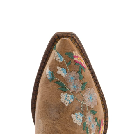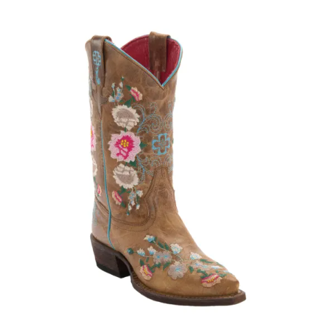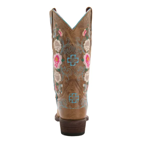 - Macie Bean | Kid's Antiqued Honey Brown with Rose Garden Embroidery Square Toe Western Boots-TAN | Quick Ship!