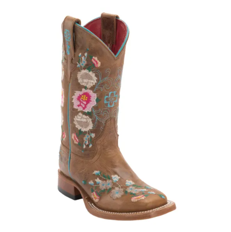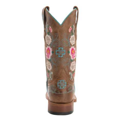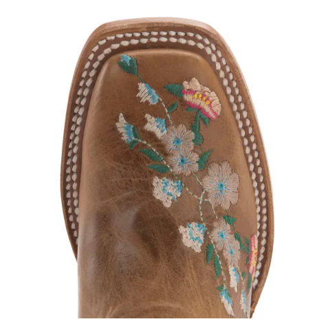 - Macie Bean | Kid's Antiqued Honey Brown with Rose Garden Embroidery Square Toe Western Boots-TAN | Quick Ship!