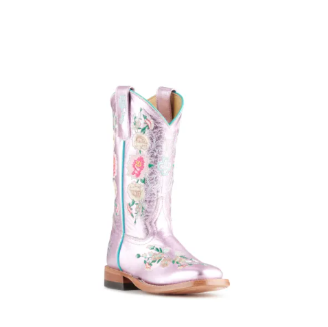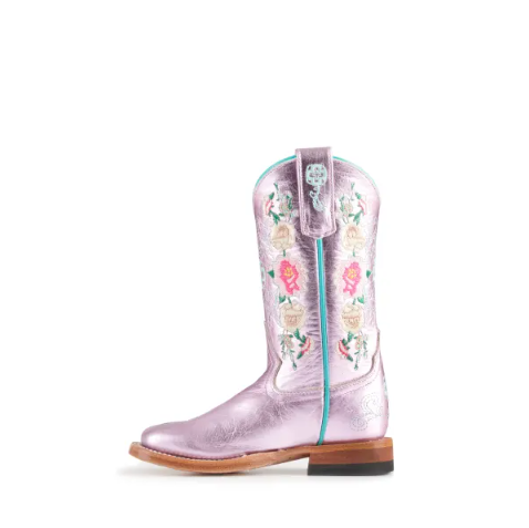 - Anderson Bean | Youth Macie Bean Metallic Pink Floral Embroidered Square Toe Cowboy Boots-LIGHT PINK | Quick Ship!