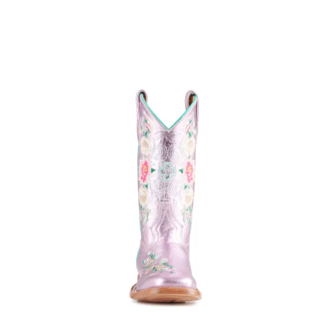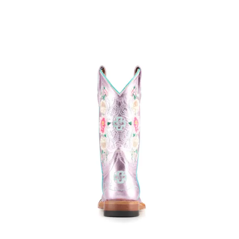 - Anderson Bean | Kids Macie Bean Metallic Pink Floral Embroidered Square Toe Cowboy Boots-LIGHT PINK | Quick Ship!