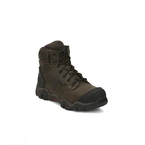 For protection from the elements, on-the-job hazards, fatigue and discomfort, this boot is up to the challenge.The 6" Waterproof Insulated Nano Composite Toe Hiker from our Cross Terrain Series is crafted from full-grain waterproof leather and features a lining made with 400g Thinsulate to help keep hardworking feet warm and dry in cold, wet conditions. The nano composite toe offers the protection you need to work with confidence, and the Ortholite removable insert provides comfortable support underfoot. On the ground, the high-performance all-terrain rubber outsole is oil-and slip-resisting, designed with abrasion-resisting rubber and water shed channels to help dispel water, plus oversized lugs to enhance stability.