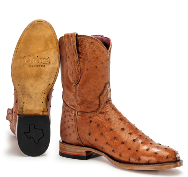 The stunning Chisos Reserve: King Roper elevates the humble roper from a purely utilitarian boot to a statement piece. Full quill ostrich leather hugs the vamps while smooth ostrich forms the uppers, complete with ostrich pulls.