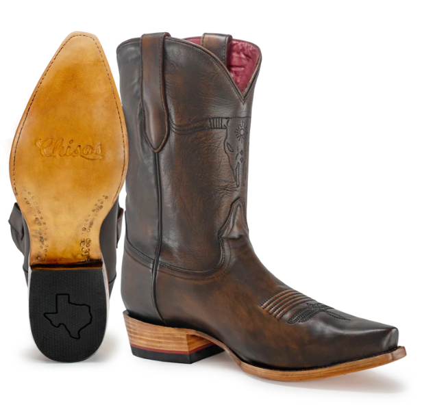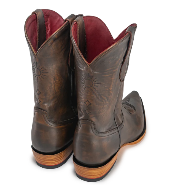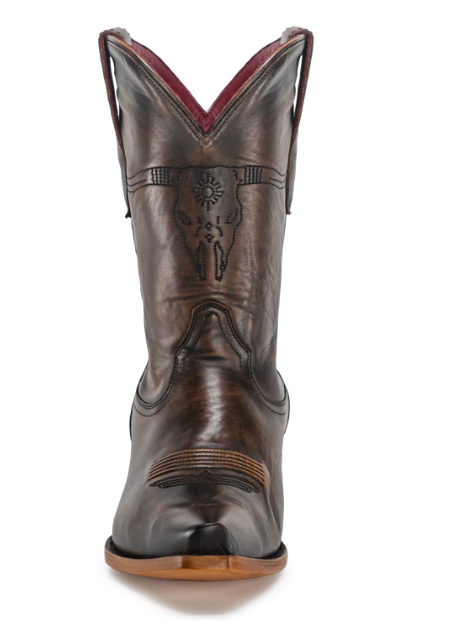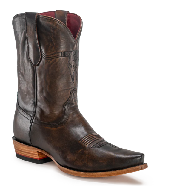 The No. 5 pays tribute to the Texas Longhorn and those great herds that defined the old west. Horns that reach the entire width of the boot dominate the embroidery. Both our magic black and roughout leathers provide full grain strength to back up the loud snip toe.