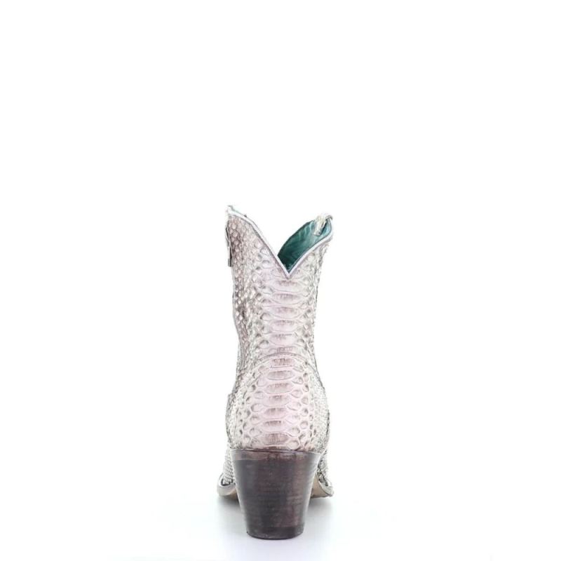 Ladies Natural Python Zipper Ankle Boot -Honoring the unique pattern of the python, this boot has a natural finish, allowing the snake's print to speak for itself. It is the perfect addition to any outfit.