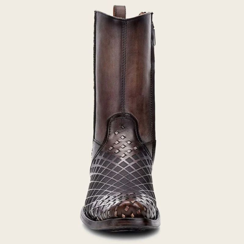 - Cuadra Men's Hand-Painted Black Leather Geometric Pattern Boot