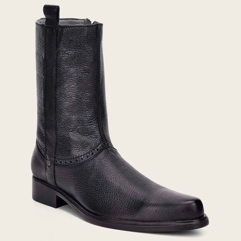 - Cuadra Men's Engraved Black Deer Leather Boot