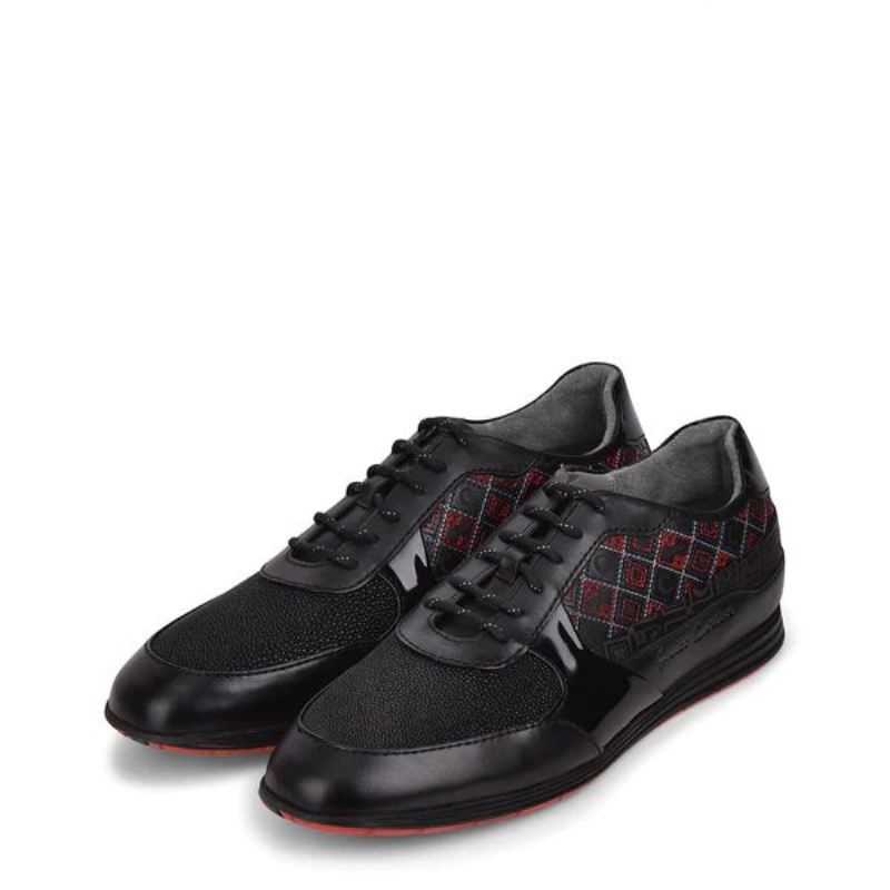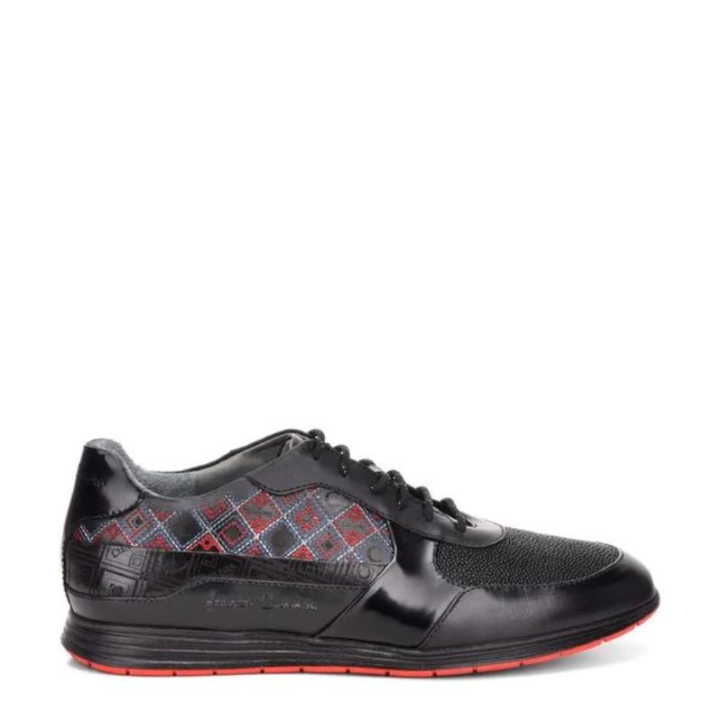 - Cuadra Men's Engraved Black Python Leather Western Boot
