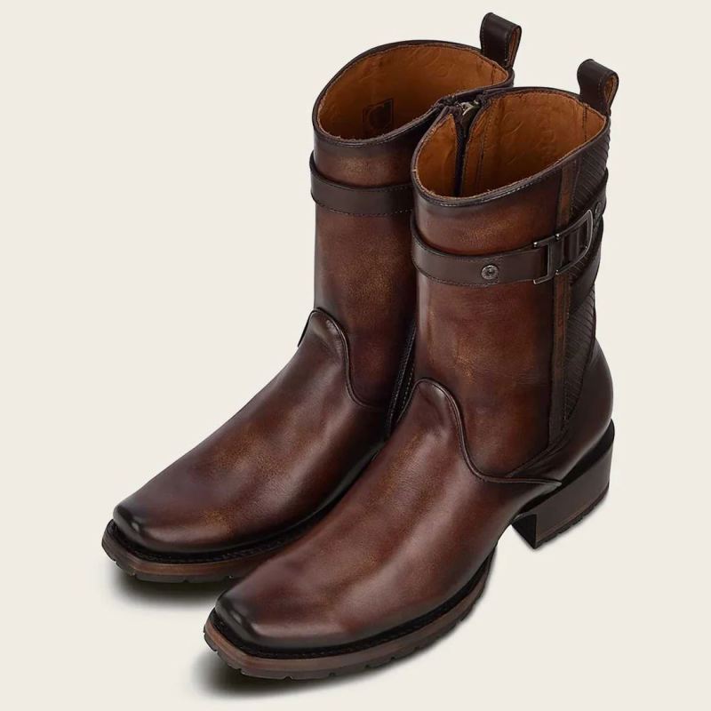 - Cuadra Men's Hand-Painted Black Leather Engraved Boot