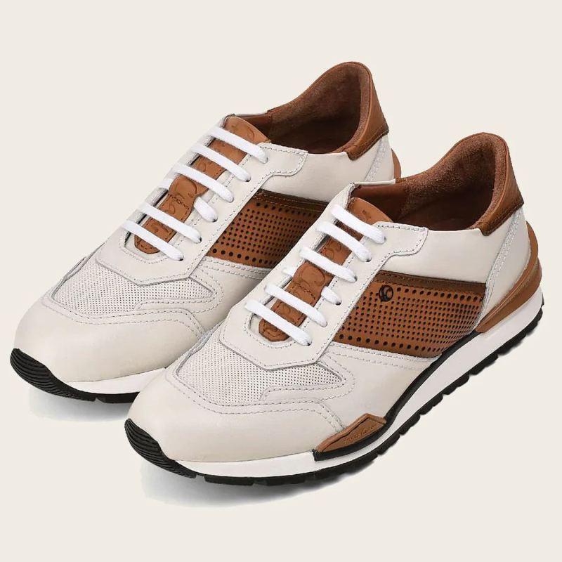 - Cuadra Men's Hand-Painted Casual White Leather Sneakers