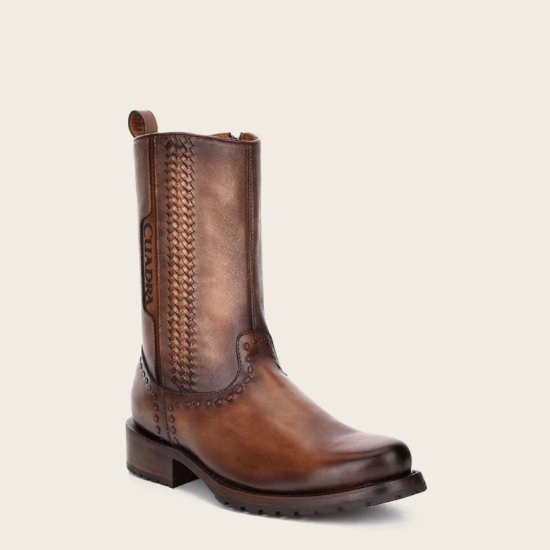 - Cuadra Men's Hand-Painted Honey Leather Boot With Handwoven Application