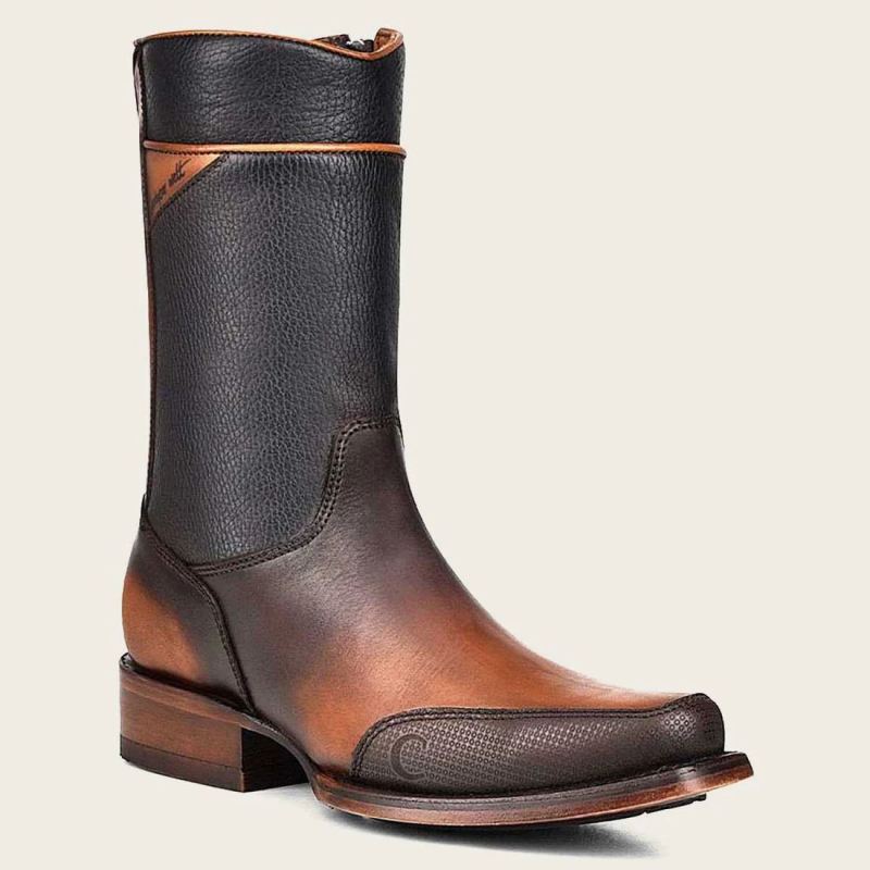 - Cuadra Men's Hand-Painted Honey Leather Boot With Handwoven Application