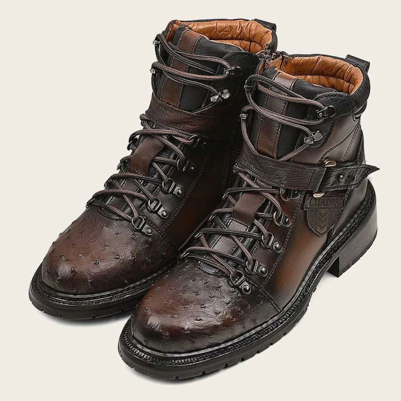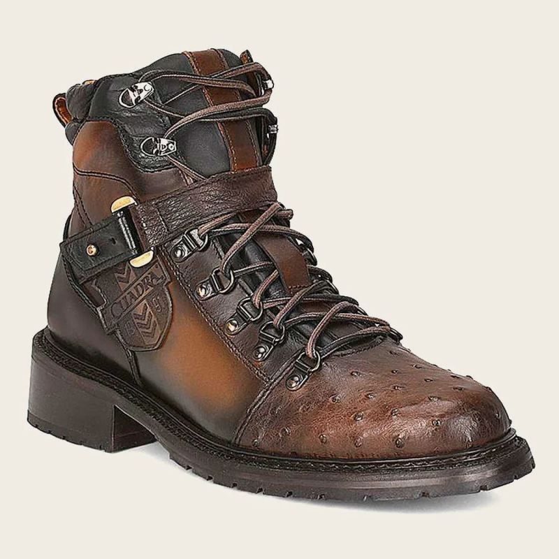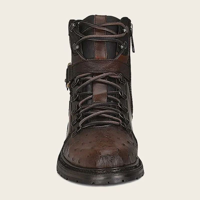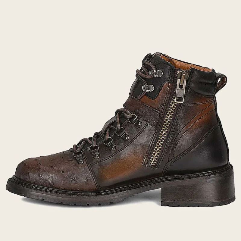 - Cuadra Men's Hand-Painted Dark Brown Leather Casual Bootie