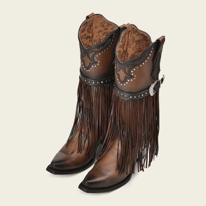 - Cuadra Women's Hand-Painted Brown Leather Boot With Austrian Crystals