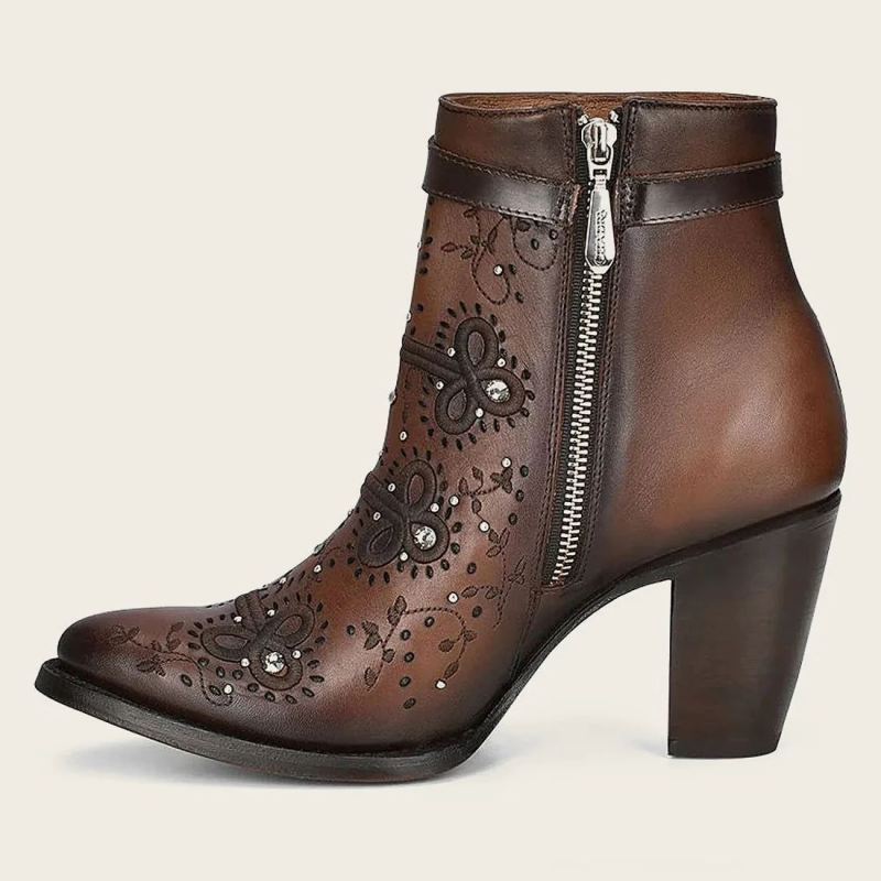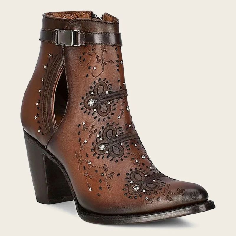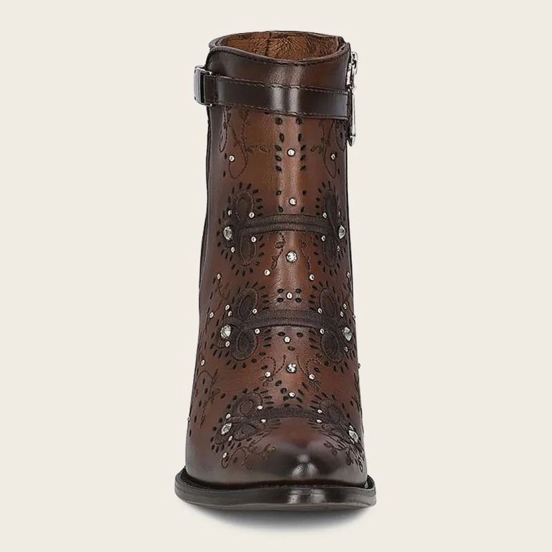 - Cuadra Women's Perforated Brown Leather Bootie With Austrian Crystals
