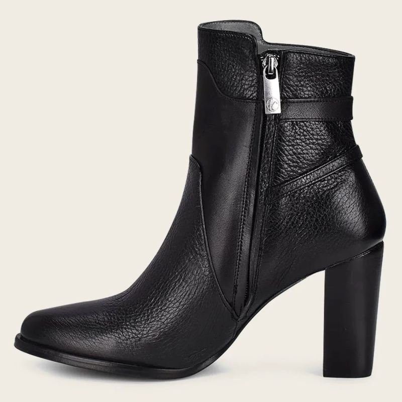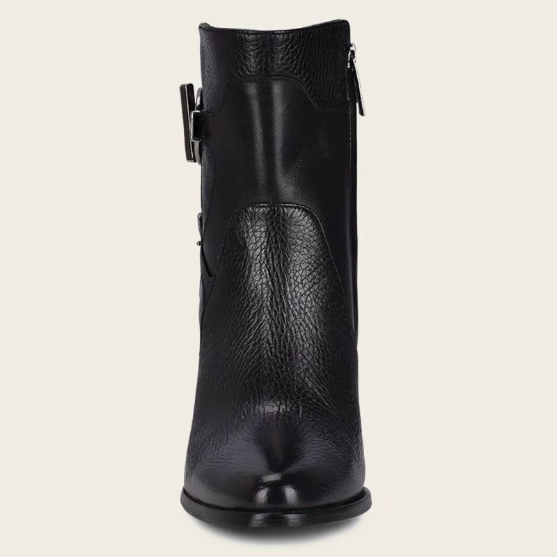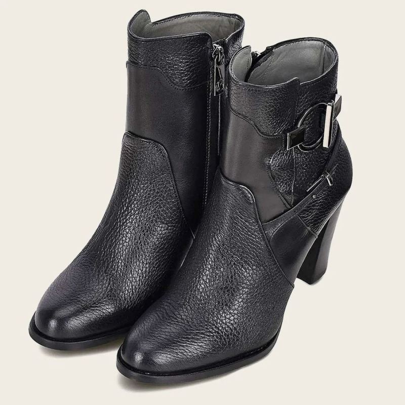 - Cuadra Women's Genuine Deer Black Leather Bootie With Buckle