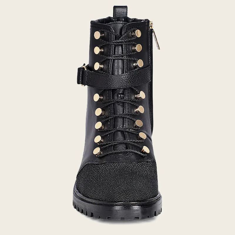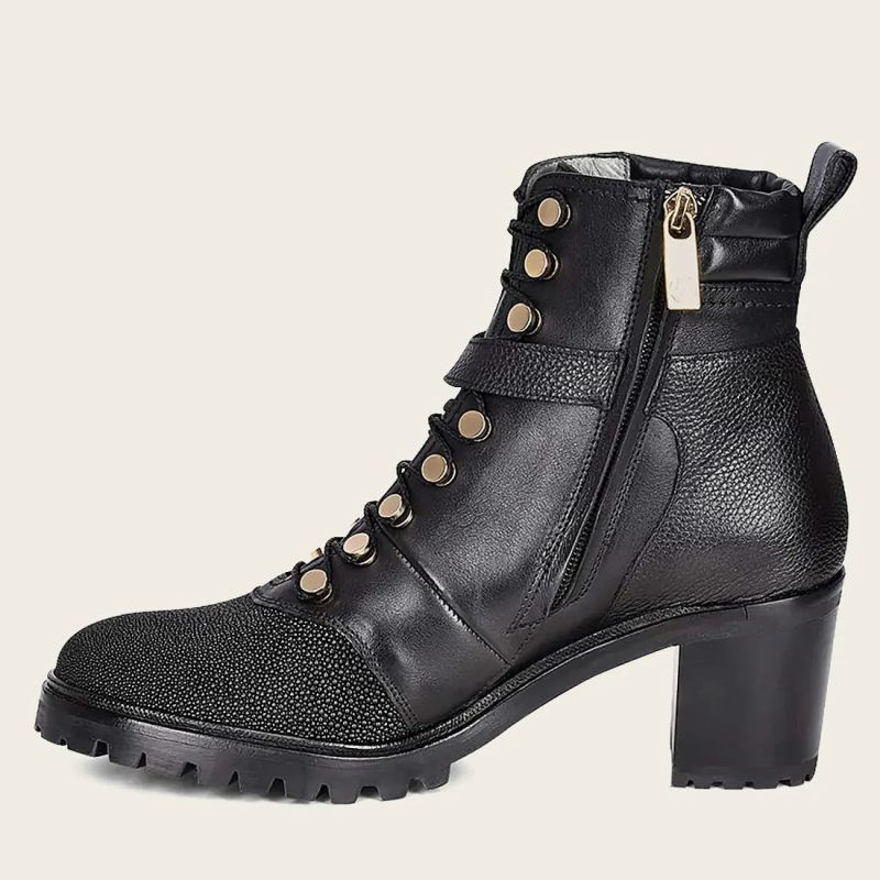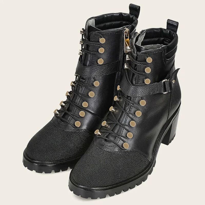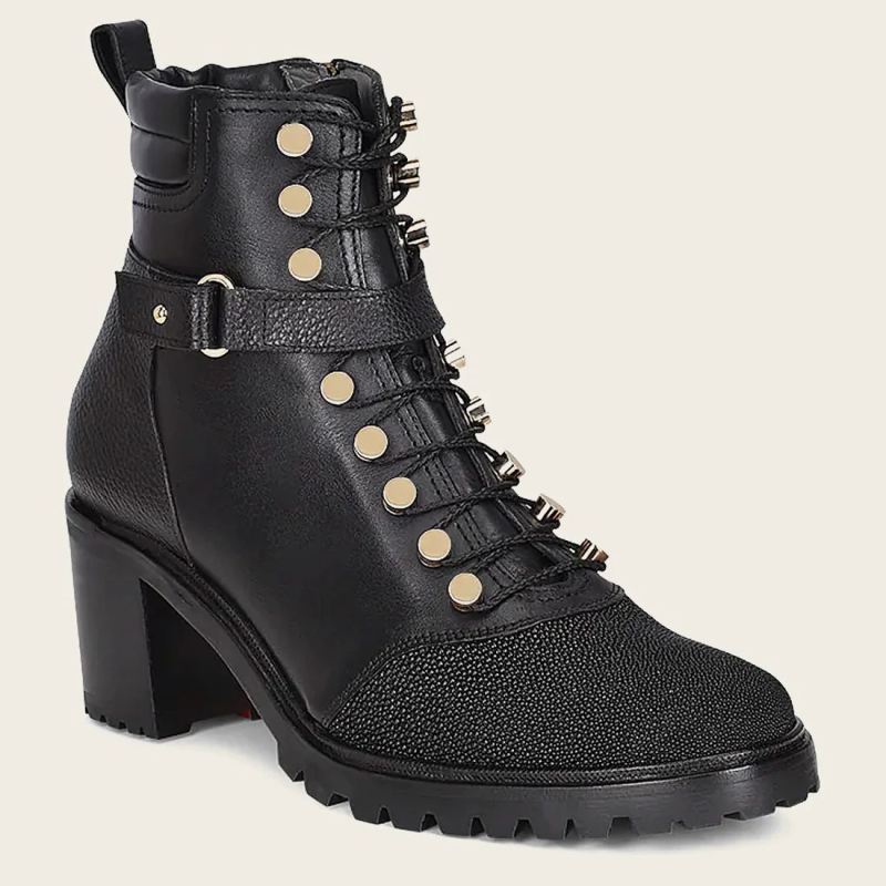 Indulge yourself in the epitome of elegance and style by adding this ankle boot to your wardrobe. Experience the luxury of genuine stingray and bovine leather, coupled with impeccable craftsmanship and attention to detail. Elevate your fashion game and make a statement with this exquisite ankle boot.