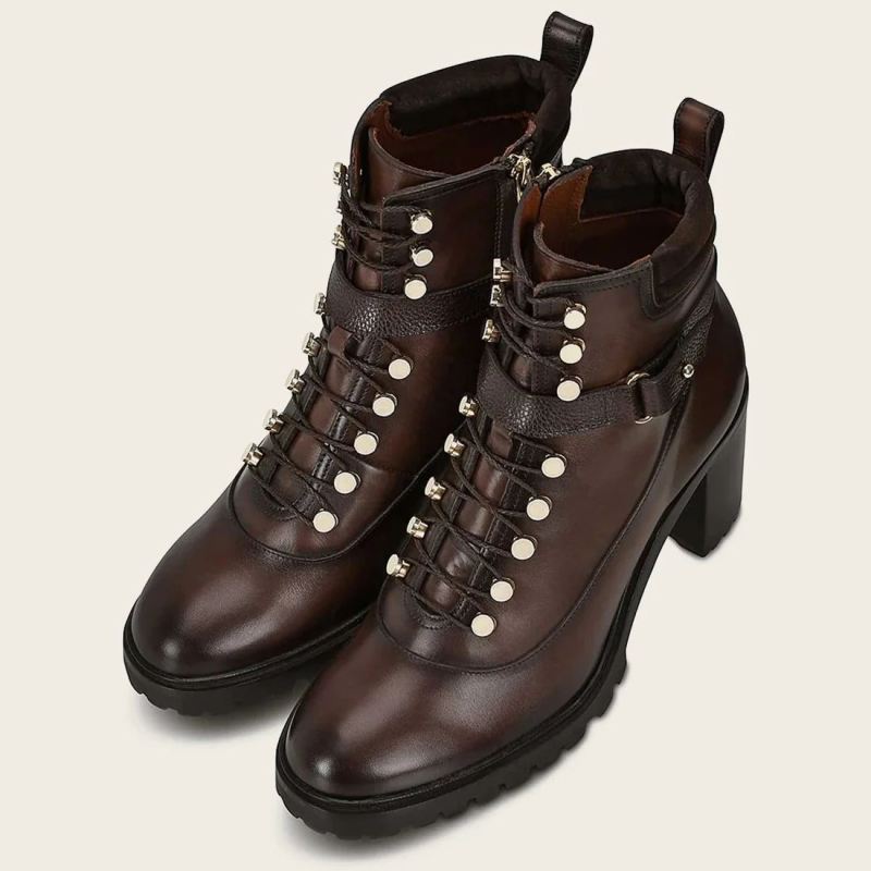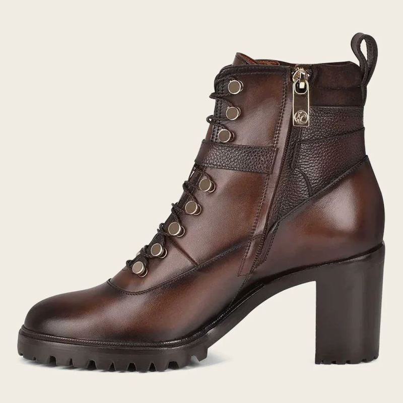 - Cuadra Women's Hand-Painted Brown Leather Ankle Bootie