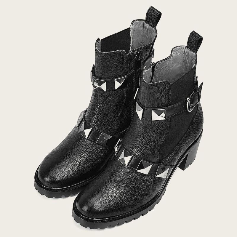 - Cuadra Women's Hand-Painted Black Leather Engraved Bootie