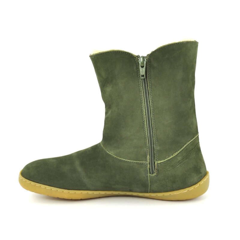 Dieser sportliche Barfußboot von Snipe ist aus waschbarem Nubukleder gefertigt und mit warmem Lammfell gefüttert. Auf der Innenseite befindet sich ein praktischer Reißverschluss. Das lose Fußbett kann herausgenommen werden. Das Gehen mit diesem bequemen Barfußschuh stärkt die Fußmuskulatur und ist besonders angenehm.
