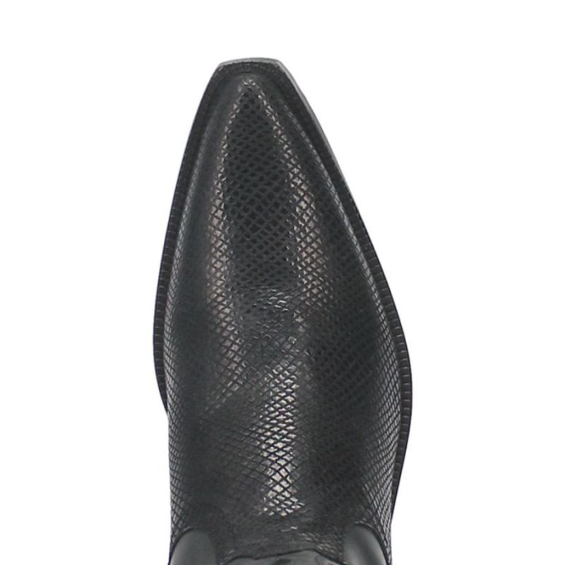 Exotic prints are timeless western influencers. #Dodge City has a lizard print leather foot. The upper has a unique stitched and corded pattern. Low walking heel and fashion snip toe complete the look.
