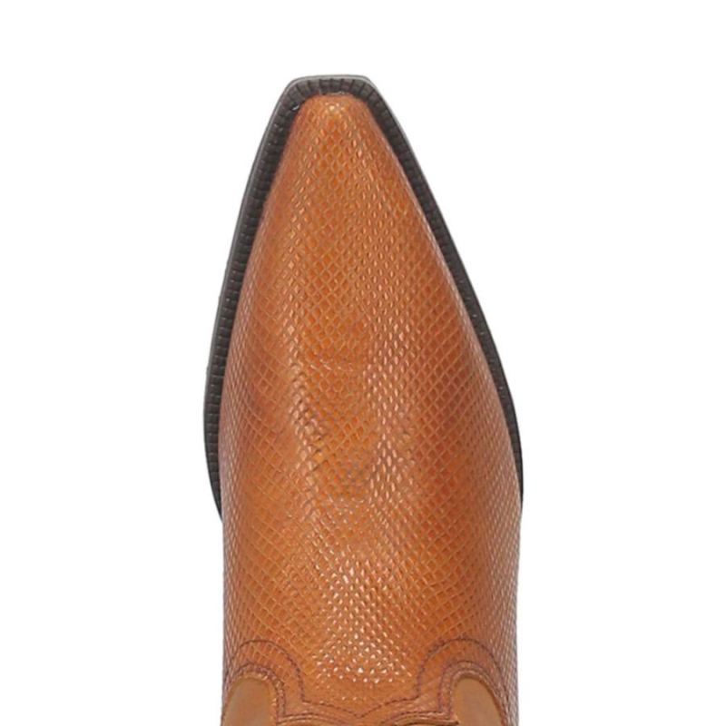 Exotic prints are timeless western influencers. #Dodge City has a lizard print leather foot. The upper has a unique stitched and corded pattern. Low walking heel and fashion snip toe complete the look.