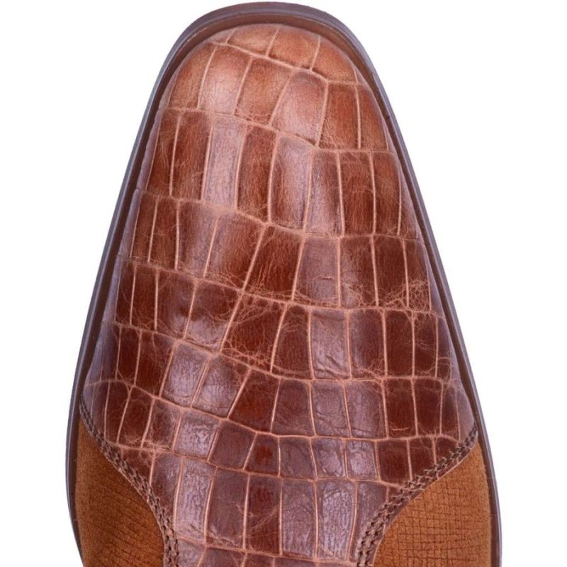 An urban vibe with a hint of western inspiration. Soft leather with gator print accents. Make a statement from dress to casual wear.