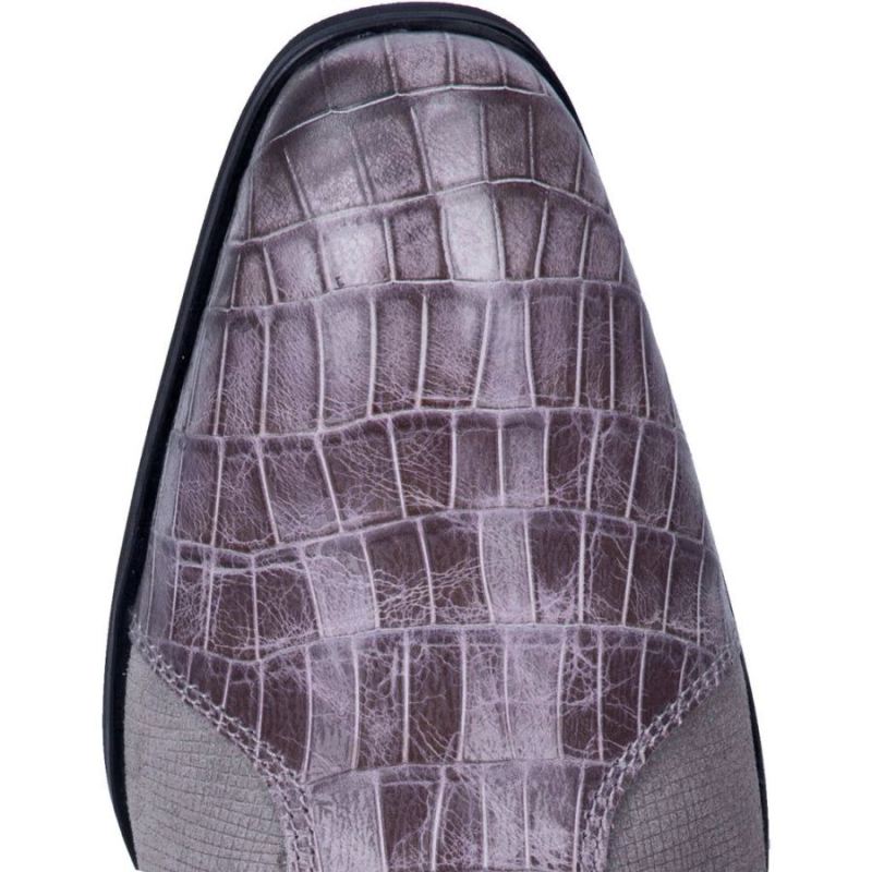 An urban vibe with a hint of western inspiration. Soft leather with gator print accents. Make a statement from dress to casual wear.