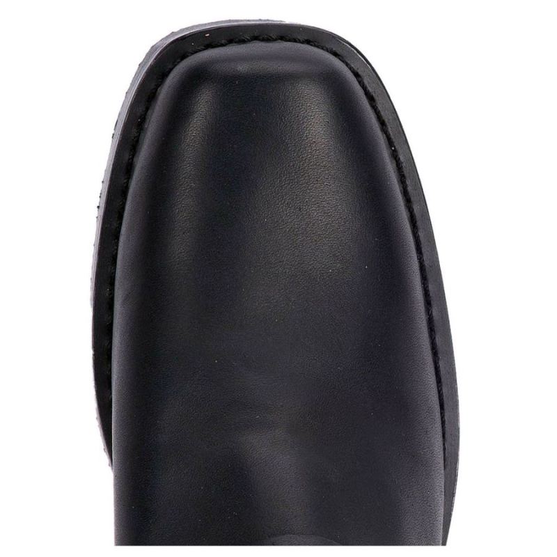 Fashion meets function with the Molly boot. Made with premium gaucho leather. Features a leather harness and brass ring, classic snoot toe, comfortable 10" height, and an oil-resistant outsole.