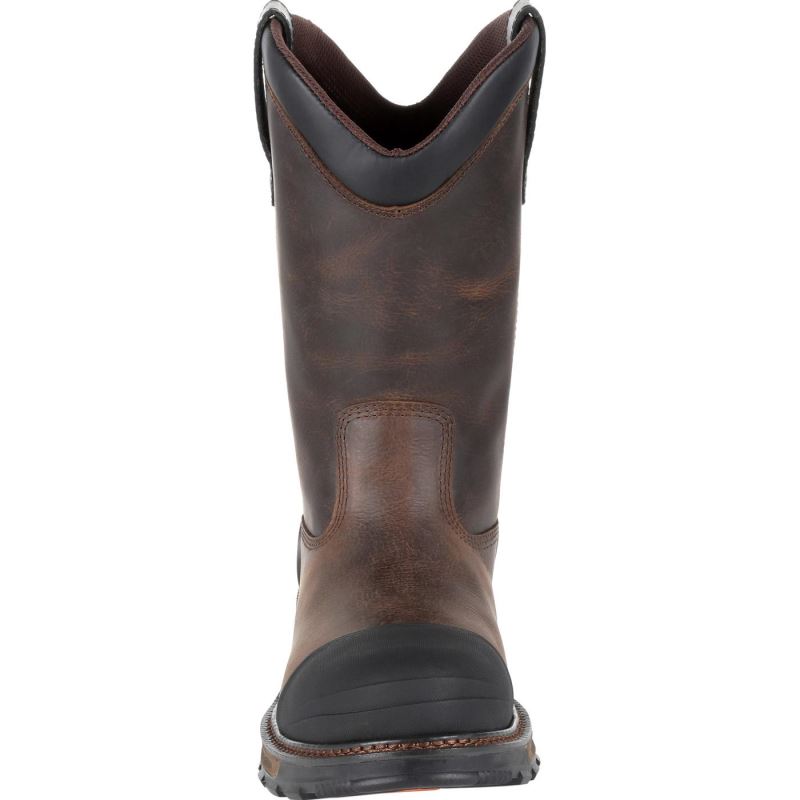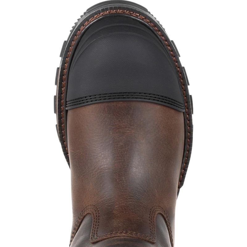 This is the men's 11 Distressed Grizzly Brown Waterproof Composite Toe Durango Maverick XP Wellington.