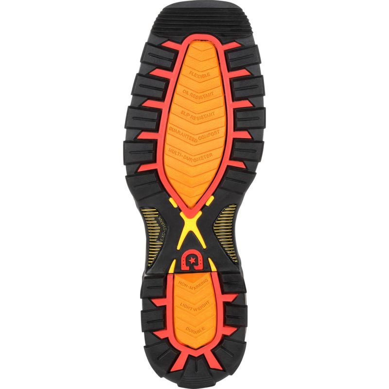 - Multi-Durometer Rubber Outsole with high abrasion rubber outer lugs for high-impact durability and softer durometer mid lugs for added flexibility and increased slip, oil and heat resistance