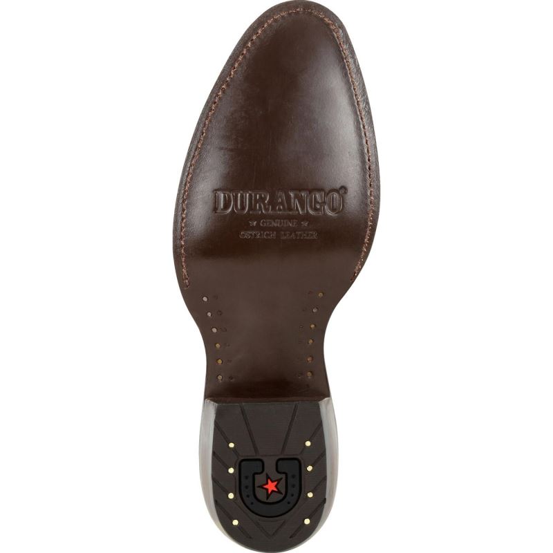 This boot has a premium full-quill ostrich foot with full-grain leather upper and ostrich overlay on the pull tabs. This style is leather lined, has the Durango X-Pand system for easy on/off and the Durango ERC footbed that energizes each step. It also has a cushion flex insole with a rigid rear foot stabilizer, nylon shank, rolled shank area and hand pegged and nailed genuine leather outsole.