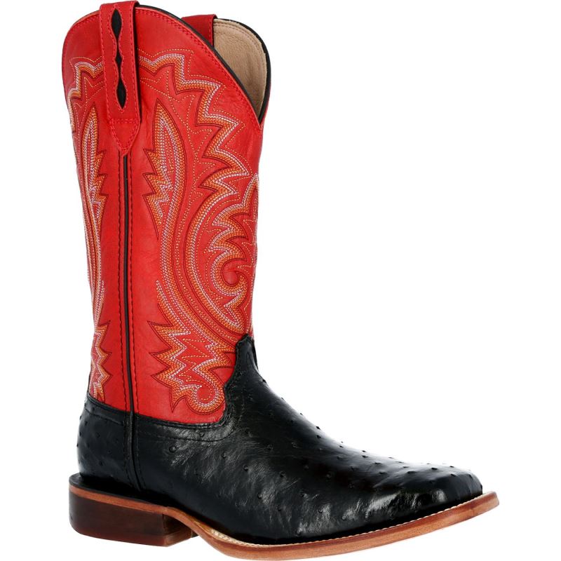 This is the men's 13" Black Ostrich/Fiery Red Durango Premium Exotics style.