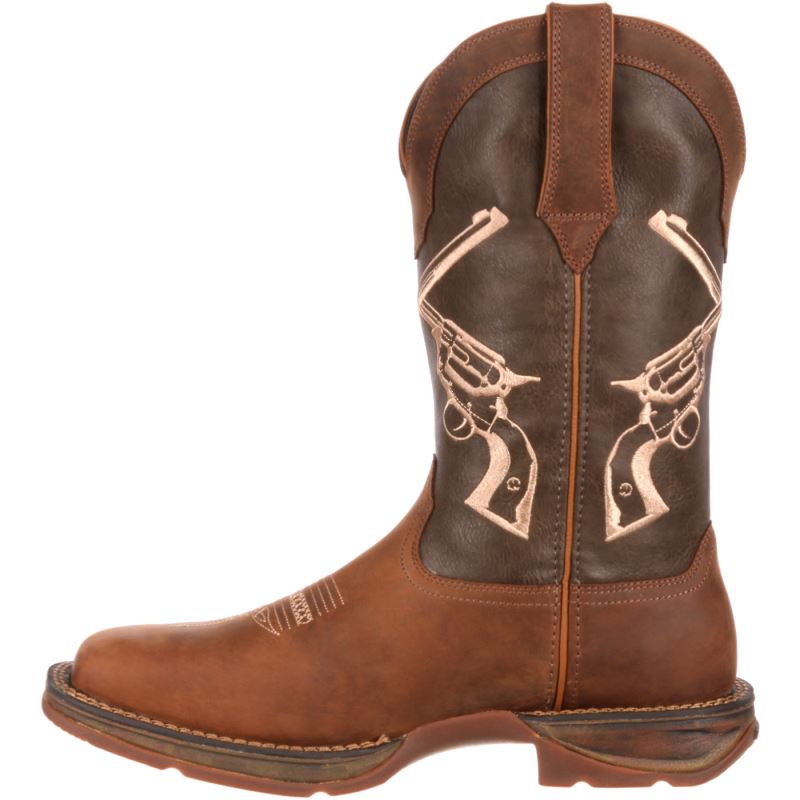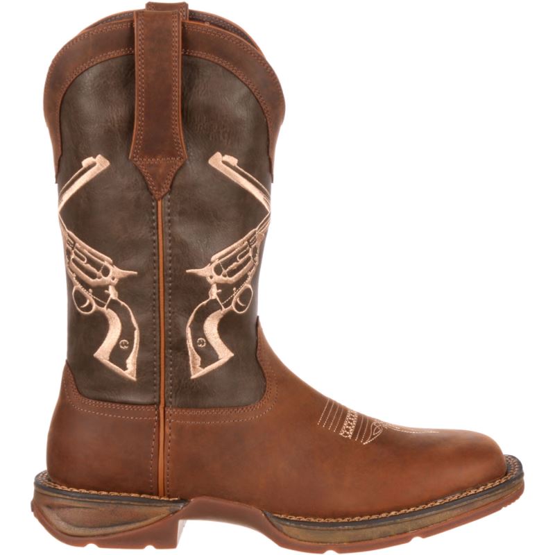Sure, this is a unique boot with guns and cowboy attitude, but Durango also wanted it to be a comfortable western boot. Inside, a tempered steel shank stabilizes your foot and supports your arch. A removable contoured ventilated cushion footbed offers even more comfort.