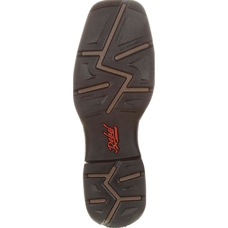 The Rebel outsole is slip and oil resistant, dual-density and abrasion resistant made from a blend of rubber and EVA; this combination gives the outsole flexibility, makes it comfortable to stand on and keeps it lightweight. There is also a lower 1 1/4" Rocker heel; this allows you to maintain a steady stride.