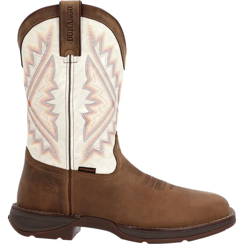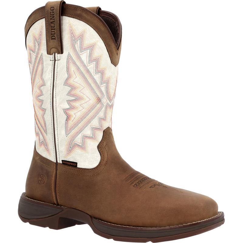 This is the men's 12" Western Waterproof Steel Toe Trail Brown/White Durango Rebel Work.