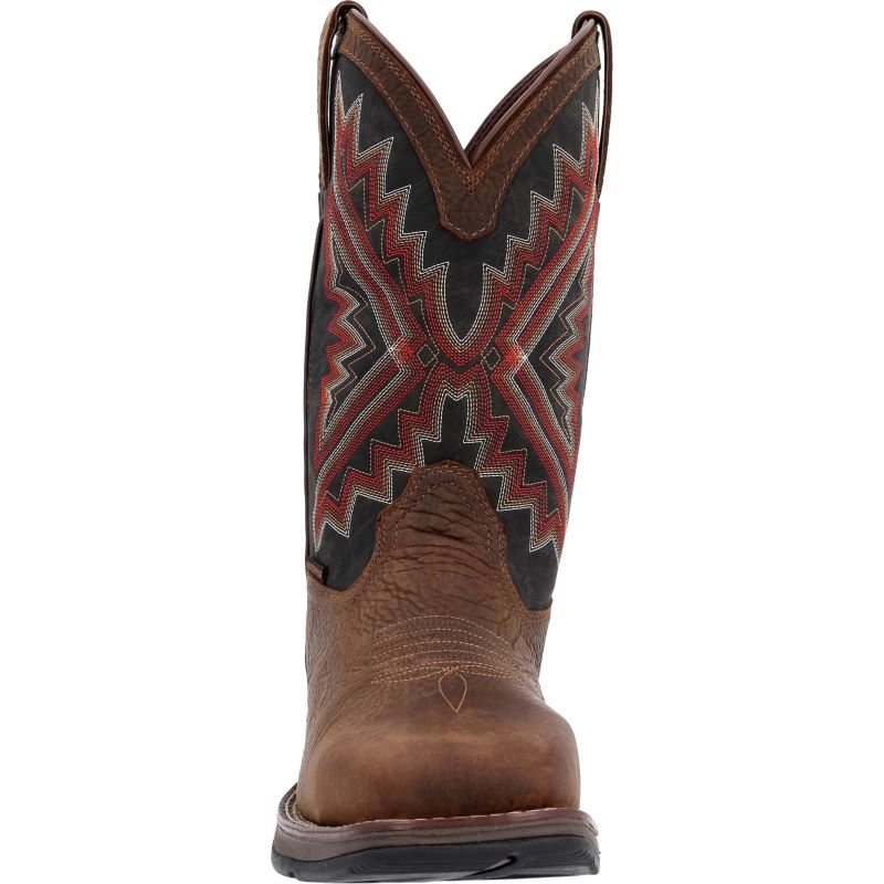 This is the men's 12" Western Waterproof Steel Toe Pioneer Brown/Midnight Durango Rebel Work.