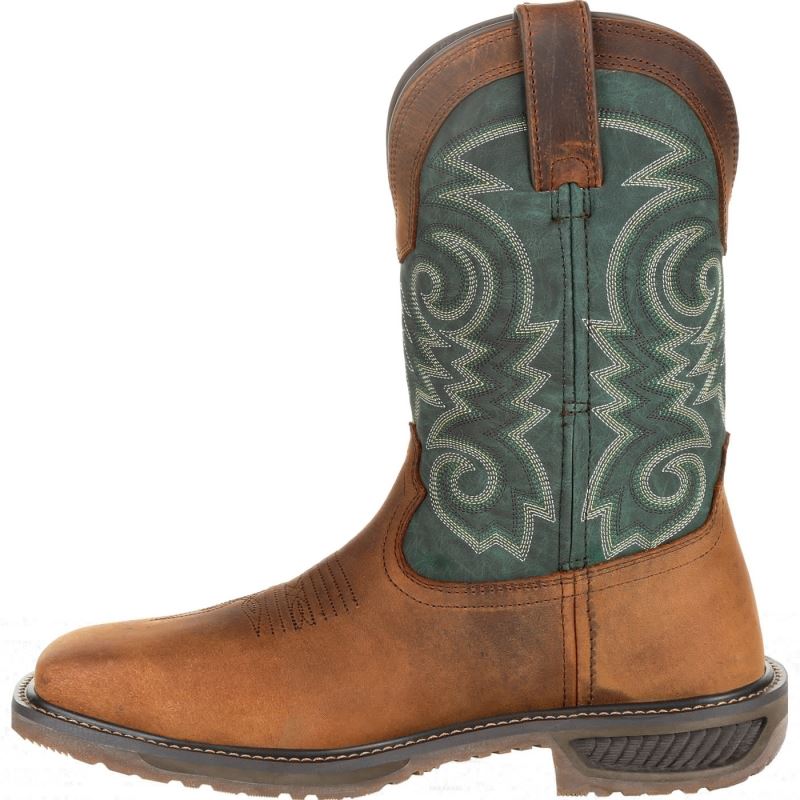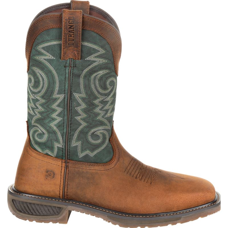 This is the men's 11 inch Western Brown/Forest Green Steel Toe Durango WorkHorse. This style has a full-grain leather foot, collar and pull straps with a faux shaft, soft mesh lining and a breathable dual-density contoured cushioned footbed for all-day comfort. This style also features the Durango X-Pand System which is a hidden gore expansion on the inside medial seam for a universal fit and easy on/off.