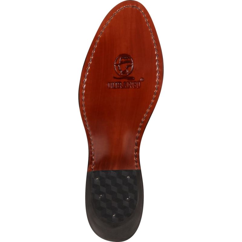 The composition outsole has been hand stained. There is a 2" cowgirl heel that elongates your legs, but is still quite comfortable to stand on.