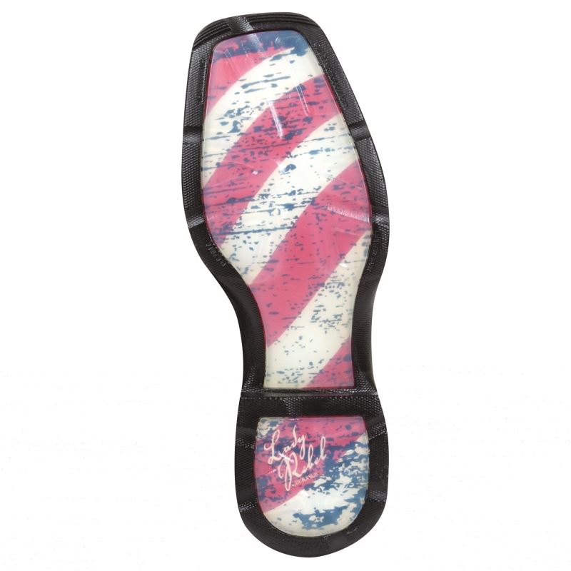 This Lady Rebel by Durango Western Boot will be the most attention-grabbing item in your closet. The stunning upper has the American flag on the shaft, full-grain brown leather that looks fashionably distressed, toe bug stitching and pull tabs that make it possible to get this pull-on boot on/off effortlessly.