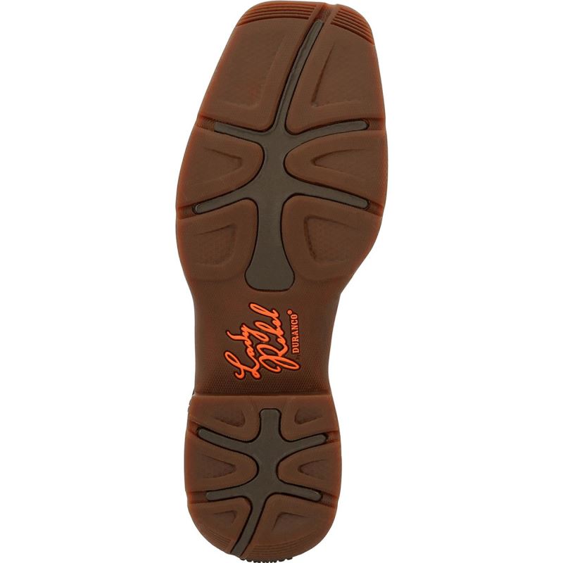 Step into a comfortable working boot in this women's 10" Western Composite Toe Dusty Brown Lady Rebel Work by Durango. Get a pair today!