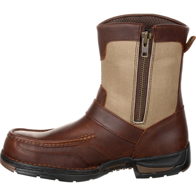 A classic Georgia Boot work collection with an upland twist. This Georgia Boot Athens waterproof boot features premium full-grain leather with a waxed canvas upper and a side zipper for easy on and off.
